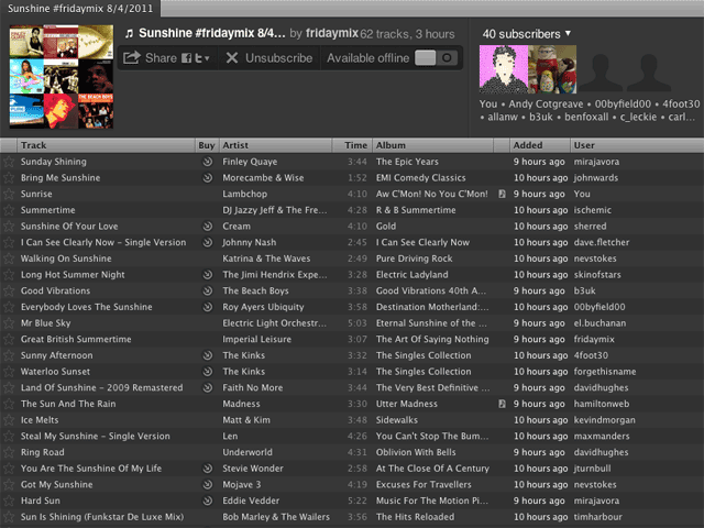 As the playlist ticks through there’s a parallel discussion on twitter, using the #fridaymix hashtag. Unfortunately this is usually pretty perfunctory and polite. It’s rare to see frank opinions exchanged, even though part of the pleasure is both cooing and sniffing and other people’s choices.
